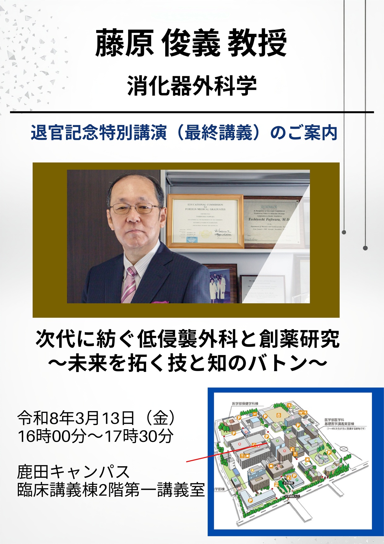 藤原俊義教授 退任記念特別講演(最終講義)の開催について